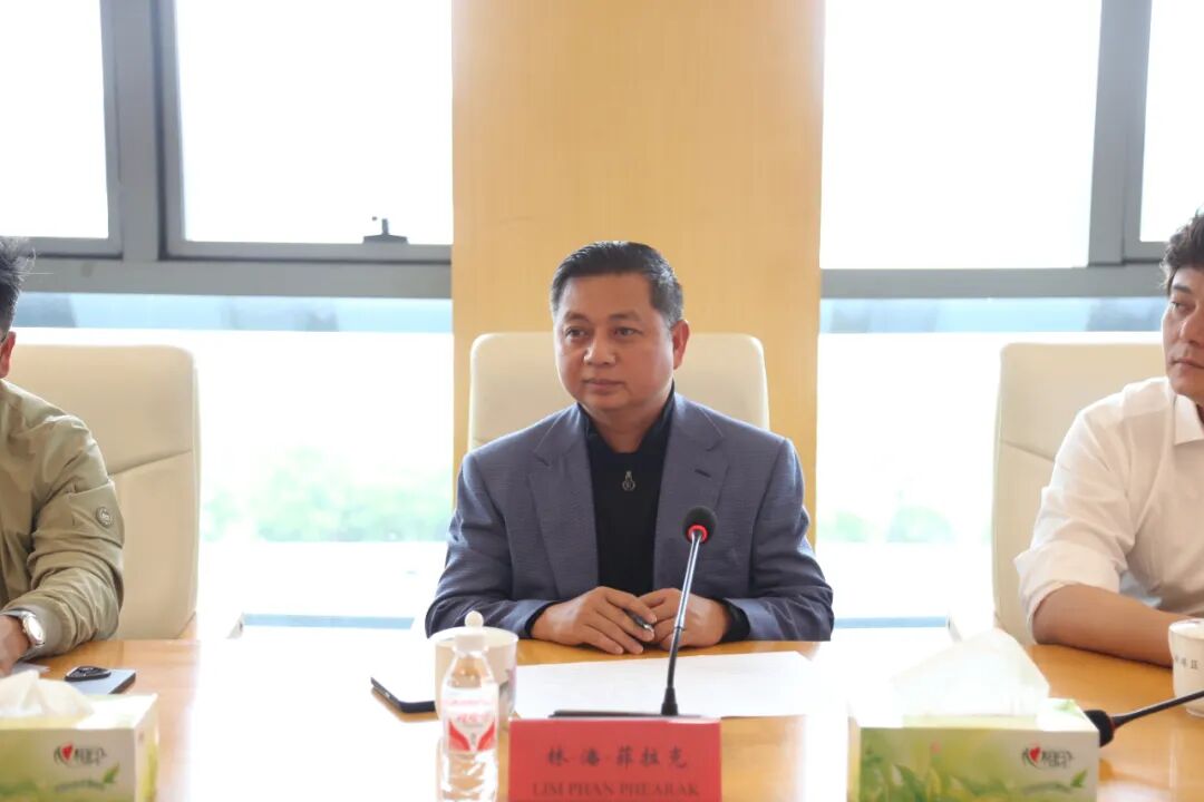 颜劲松对林·潘·裴拉克一行的到来表示欢迎,他表示,习近平总书记在近日对柬埔寨的国事访问中指出,“中柬两国是友好邻邦,更是铁杆朋友”。观盛公司与东南亚各国的贸易往来及项目合作一直以来都秉承着相互尊重和互利共赢的原则。未来,观盛公司将继续响应国家“一带一路”倡议,持续发挥自身资金、资源和技术等方面优势,加强与柬埔寨的项目合作,实现发展共赢。 林·潘·裴拉克表示,中国是柬埔寨的好朋友、好伙伴,柬埔寨非常重视和关心在柬发展的中国企业。柬埔寨商务部将大力支持观盛公司于今年开启的柬埔寨天然橡胶加工厂投资计划,希望观盛公司为柬埔寨带来更加先进的技术和管理经验,为柬埔寨创造更多的就业岗位。同时,柬埔寨商务部也期待与观盛公司在更多领域谋求更深合作,共同为两国经济社会发展作出更多贡献。当天,林·潘·裴拉克一行还参观了岳阳城陵矶港物流通道和相关企业。